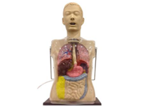 ■ 外形用高强度透明材料制成,口腔内有牙、舌、悬雍垂、声门、会厌、喉等解剖结构,具有气管、支气管、左右肺脏、心脏、食管、胃、膈、肝脏、胆囊、胰腺以及小肠、结肠结构。